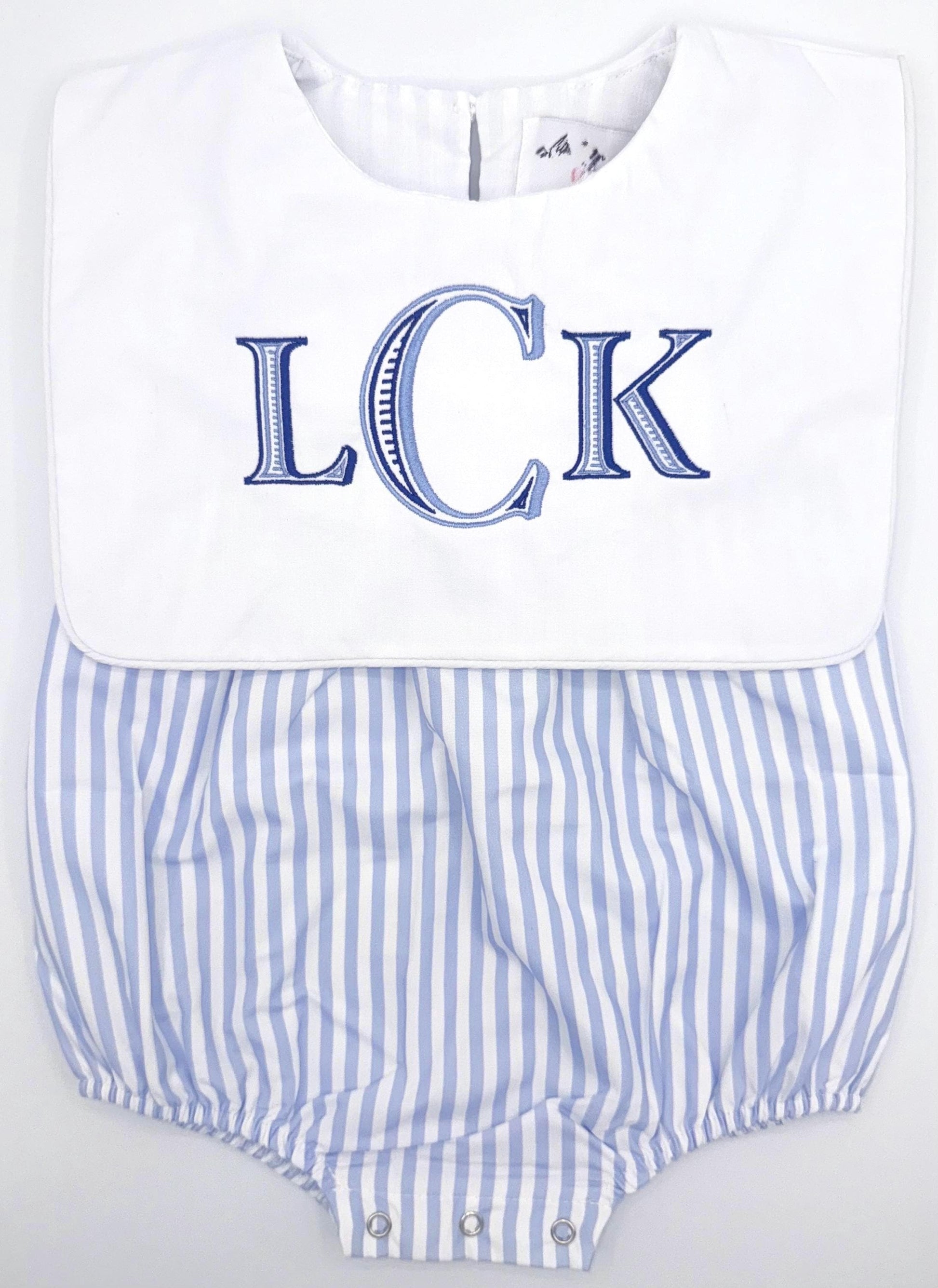 Blue and White Striped Bib Bubble, Baby Boy Toddler | Summer Romper, Monogram Options, Baptism, Baby Shower Gift, Customize, Embroider