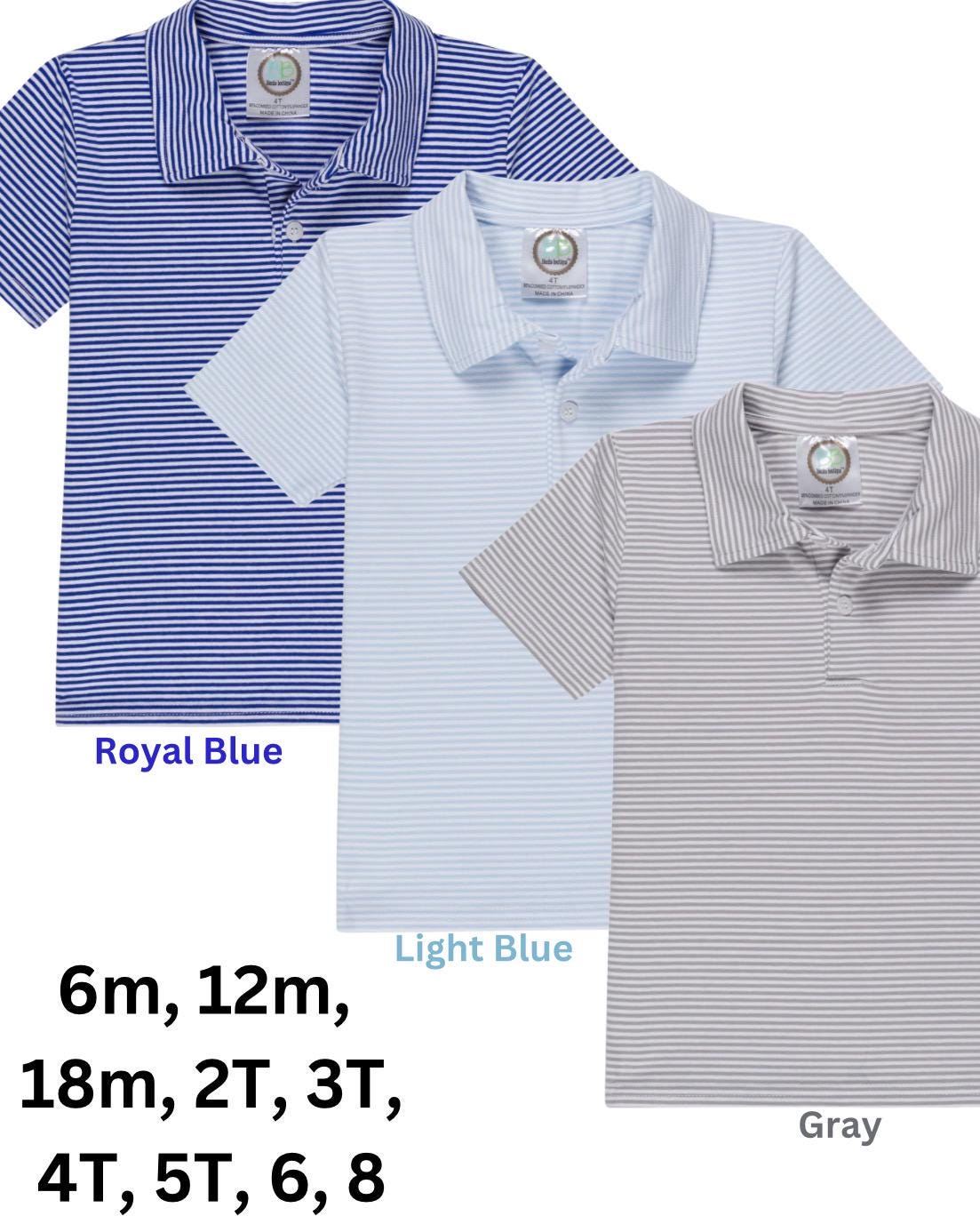 Custom Monogrammed Stripe Polo, Baby Boy Toddler | Monogram Options, Royal Blue, Light Blue, Gray, Solid Polo Options, Closet Staple, Strips
