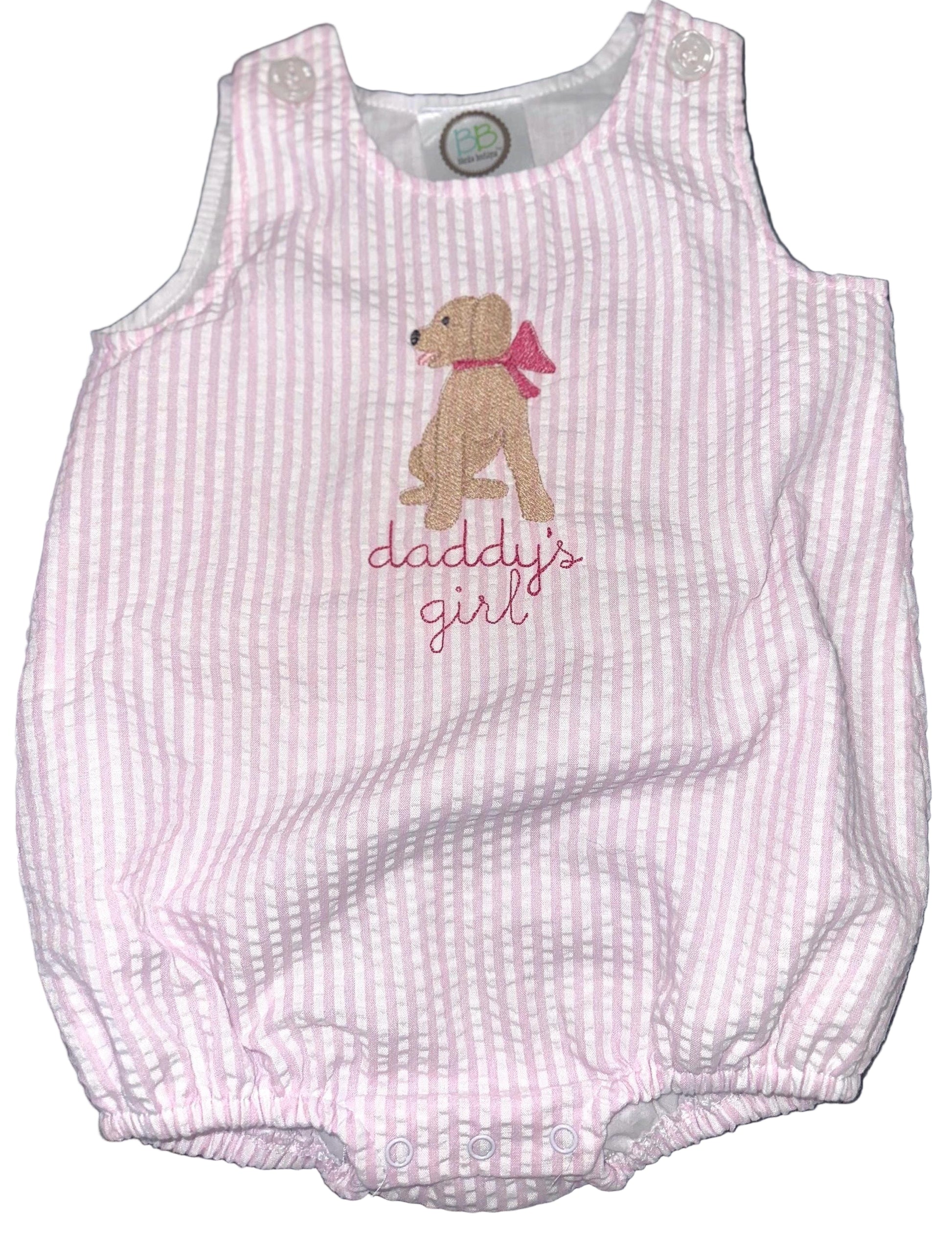 Customizable Unisex Pink Seersucker Bubble, Baby Boy Girl Toddler | Dad’s Dude, Daddy’s Girl, Monogram, Personalize, Gingham