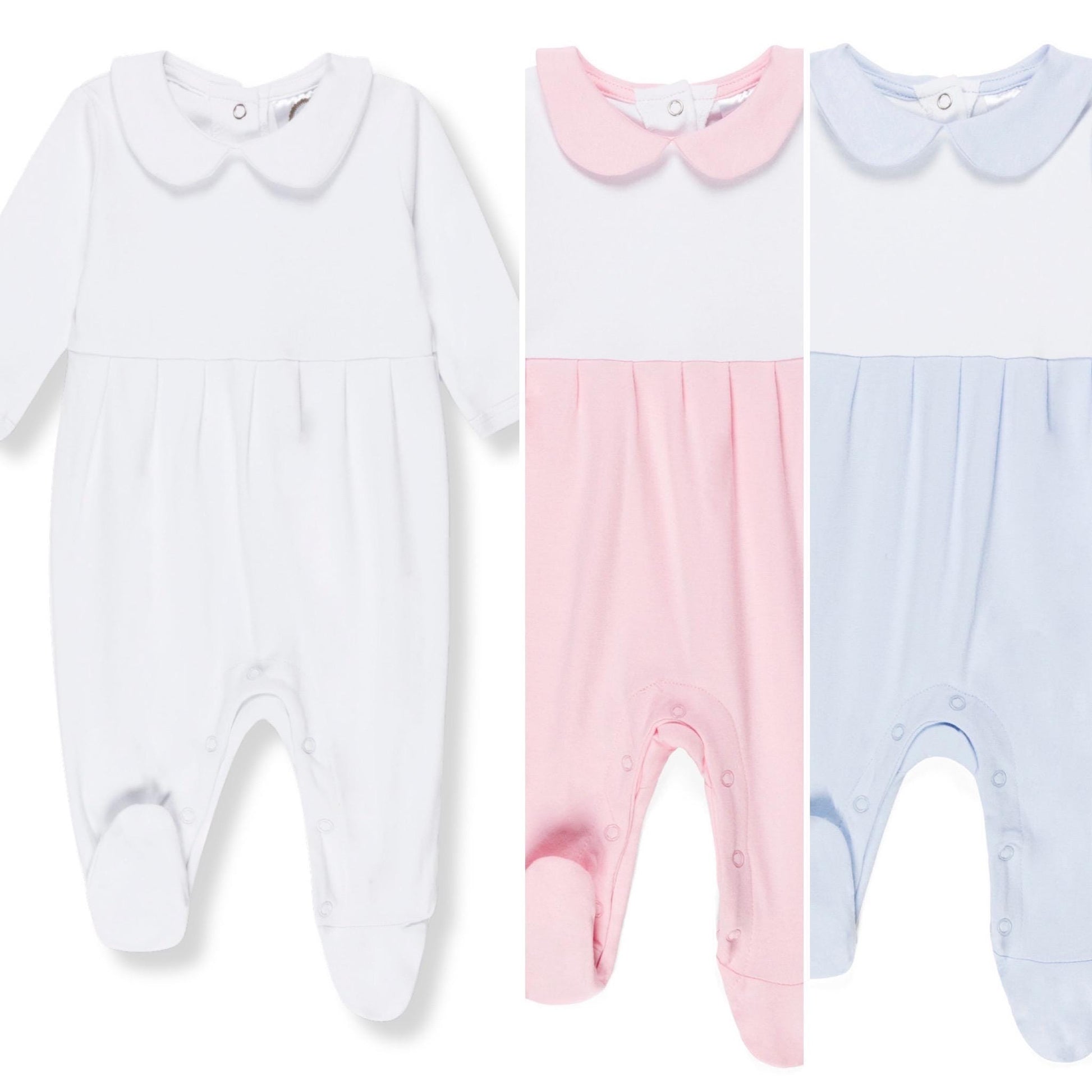 Customized Blue Peter Pan Collar Footie, Baby Boy Girl | Hospital Outfit, Newborn, Embroidery, Coming Home Outfit, Sleeper, Stripes, Gingham