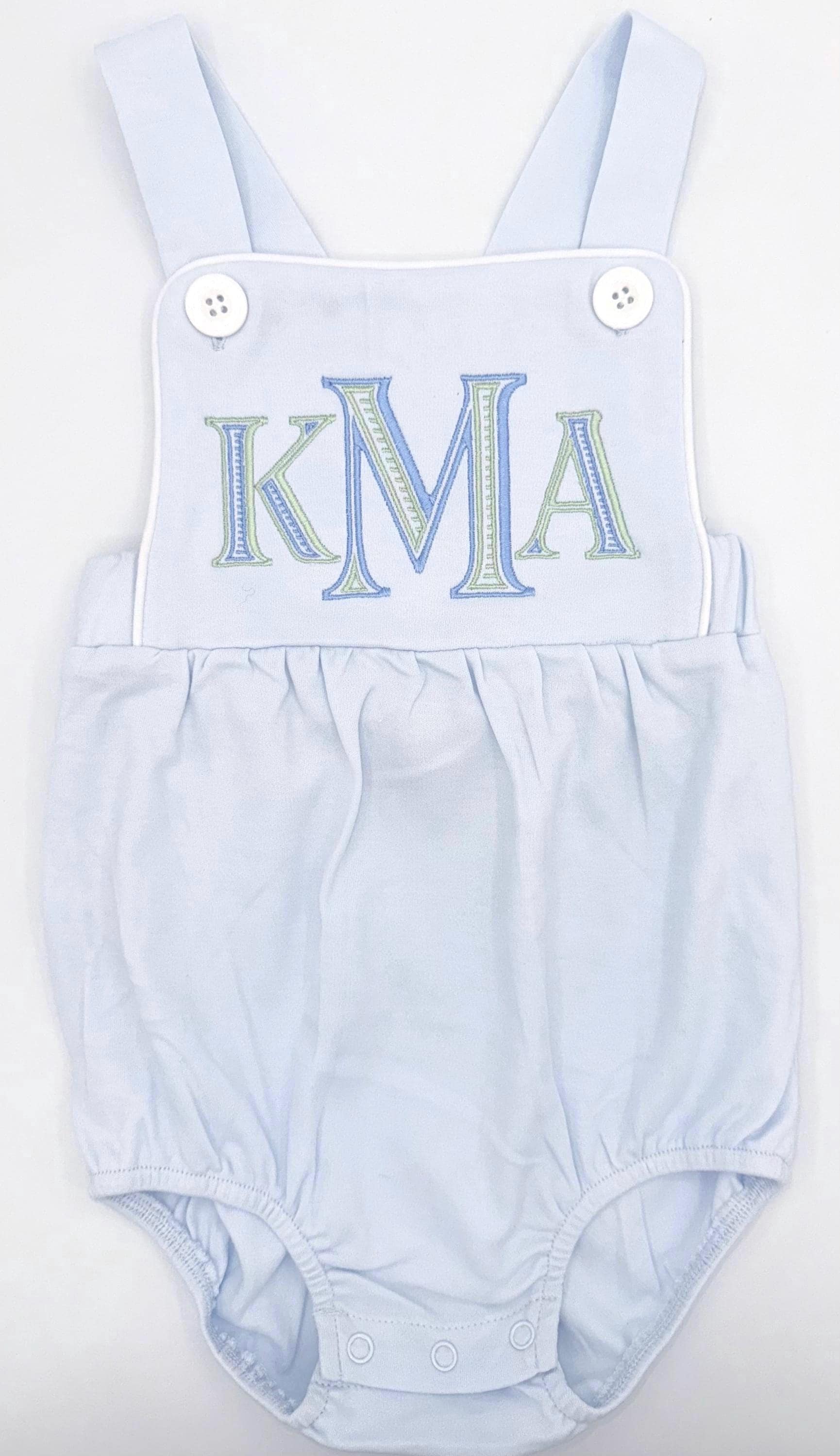 Embroidered Monogrammed Light Blue Boy’s Sunsuit, Baby Boy Toddler | Bubble, Boy Outfit, Summer, Monogram Options
