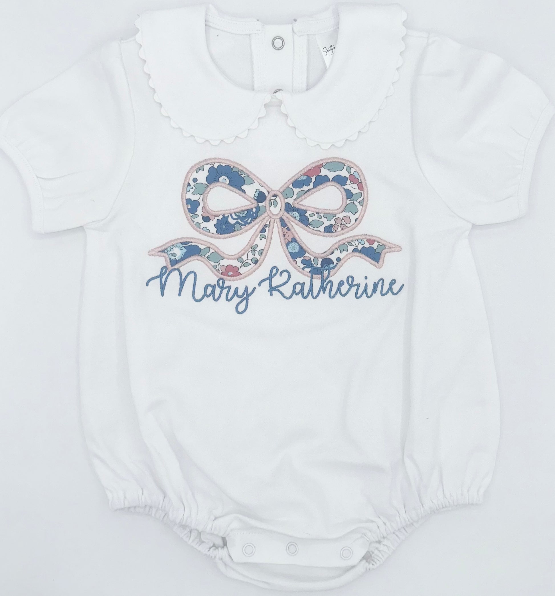 Floral Bow Appliqué Baby Bubble with Peter Pan Collar