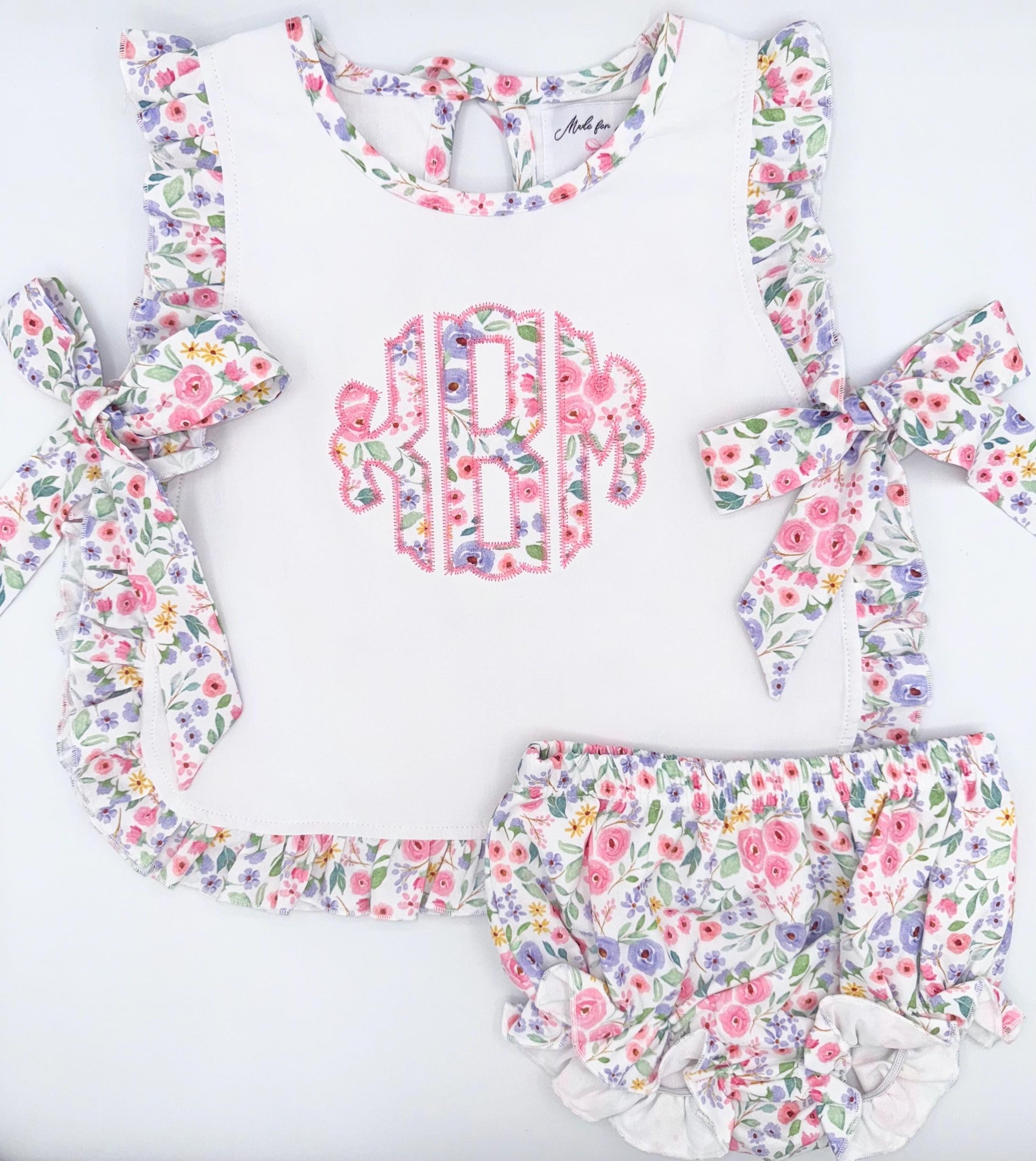 Personalized Baby Girl Outfit| Flower Bow Apron Bloomer Set, Baby Toddler Girl,Embroidery, Customize, Floral Fabric, Summer