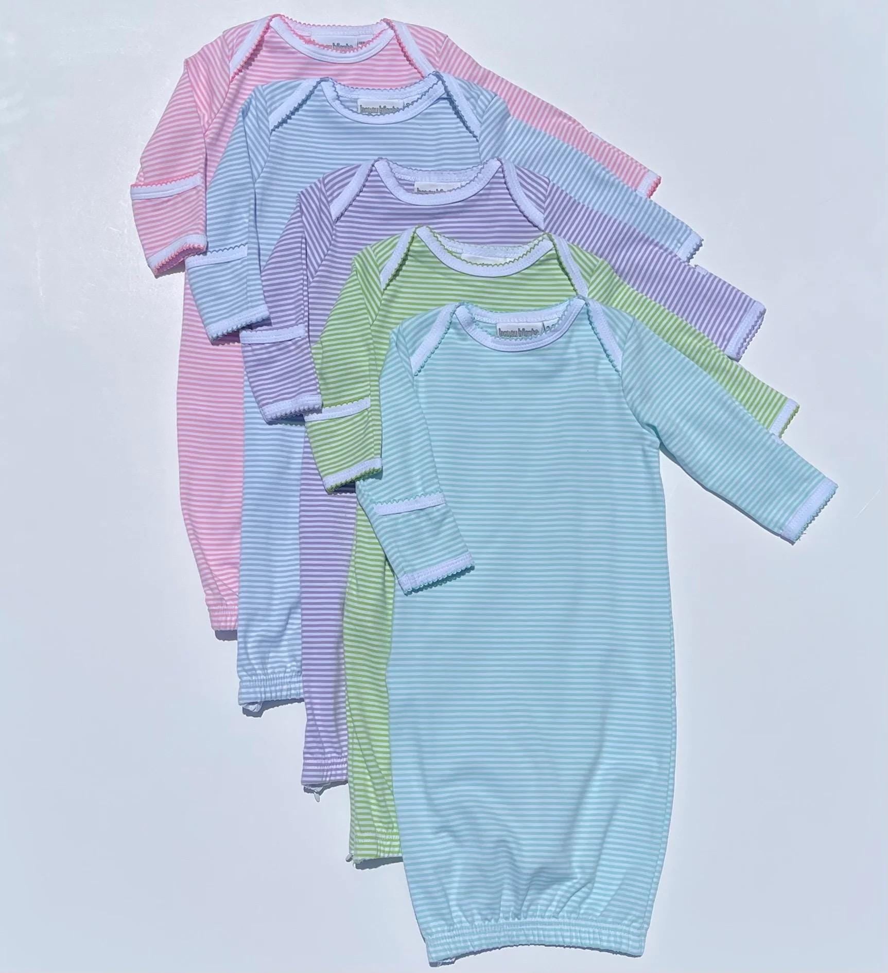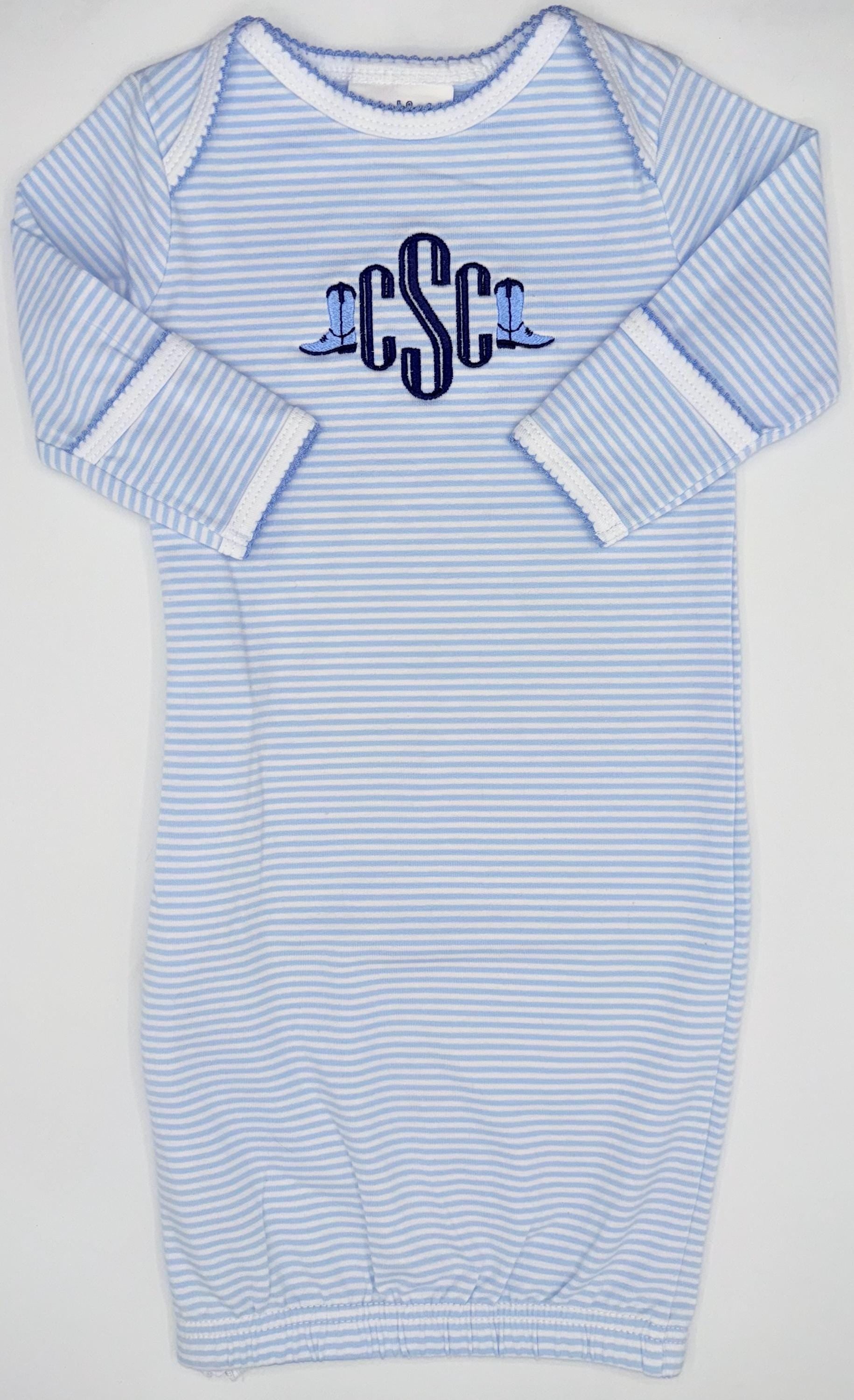 Personalized Blue Stripe Newborn Gown, Baby Boy Girl | Hospital Outfit, Newborn Outfit, Embroidery, Coming Home Outfit, Cowboy Boots