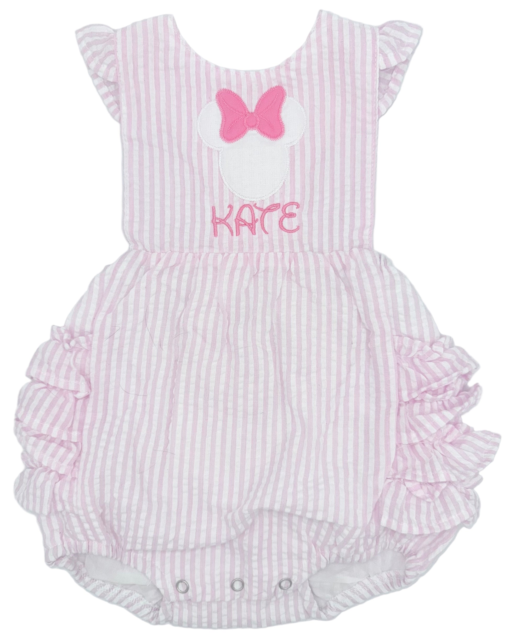 Personalized Girls Seersucker Ruffle Mouse Romper