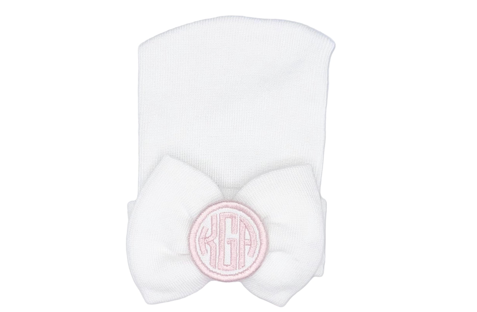 Personalized Newborn Bow Hat | Custom Baby Girl Hospital Beanie with Name or Monogram, Embroidered, Gender Neutral, Personalized