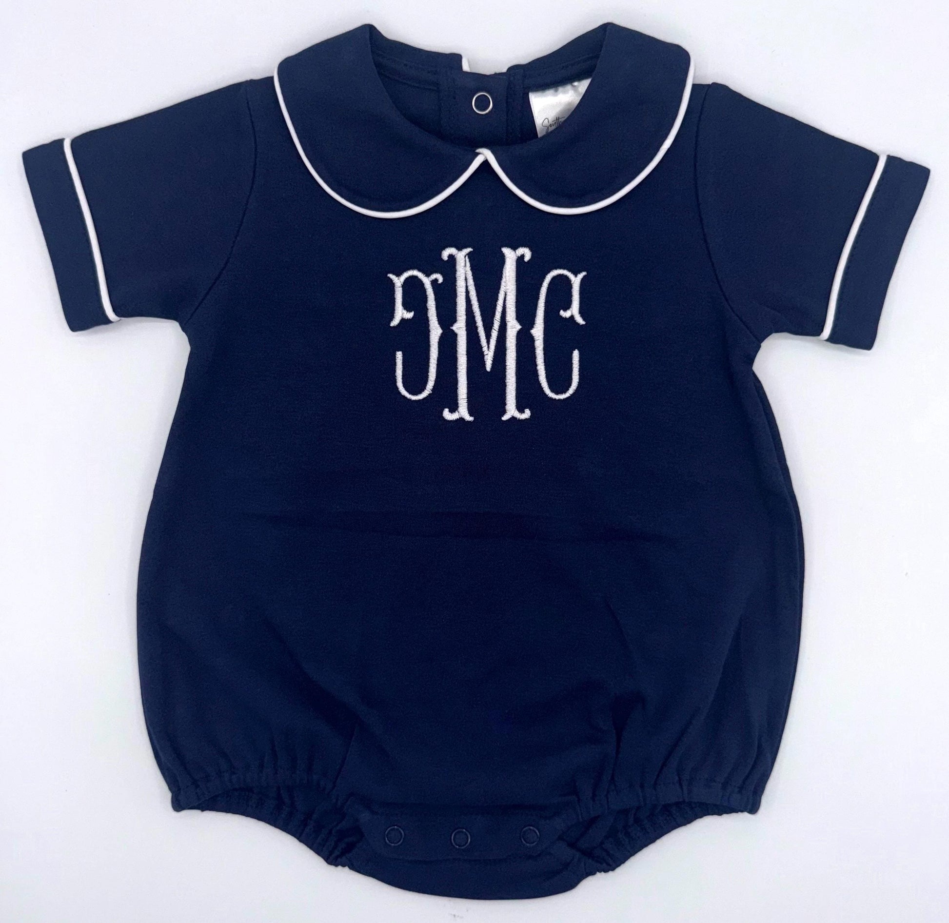 Personalized Piped Edge Bubble with Peter Pan Collar, Navy White Sage Light Blue Options, Romper, Customize, Monogram, Embroidery, Design