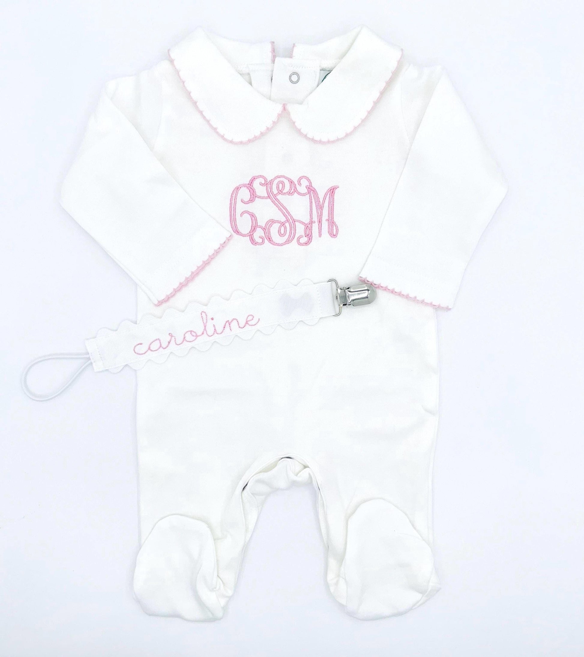 Personalized White w/ Picot Trim Newborn Footie, Baby Boy Girl | Hospital Outfit, Newborn Outfit, Customize, Embroidered, Coming Home Outfit