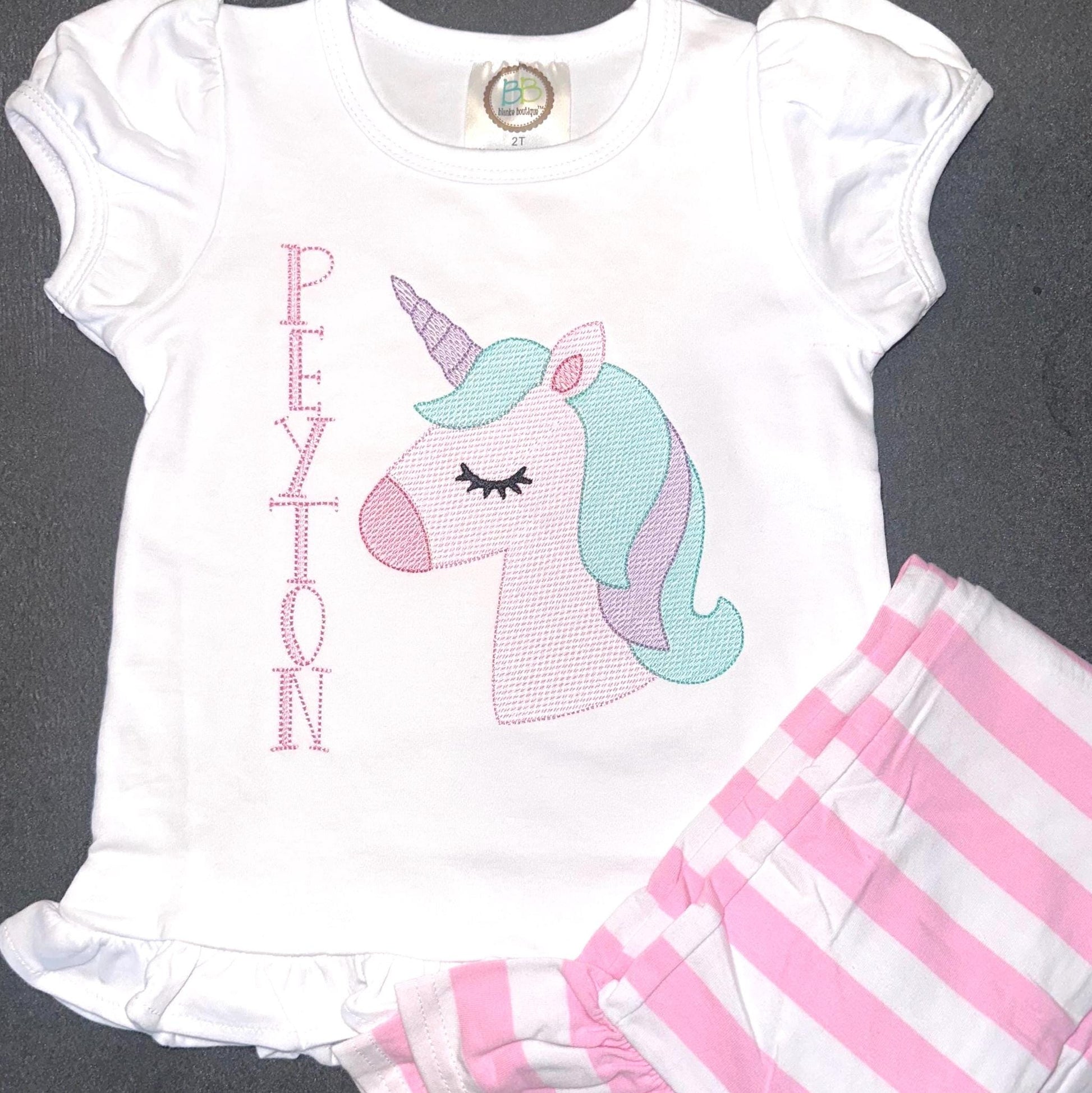 Ruffle Stripe Shorts, Baby Girl Toddler | Summer Shorts, Color Options, Closet Staple, Clothing Sets, Shorts Sets; Large Stripes, Blue, Pink